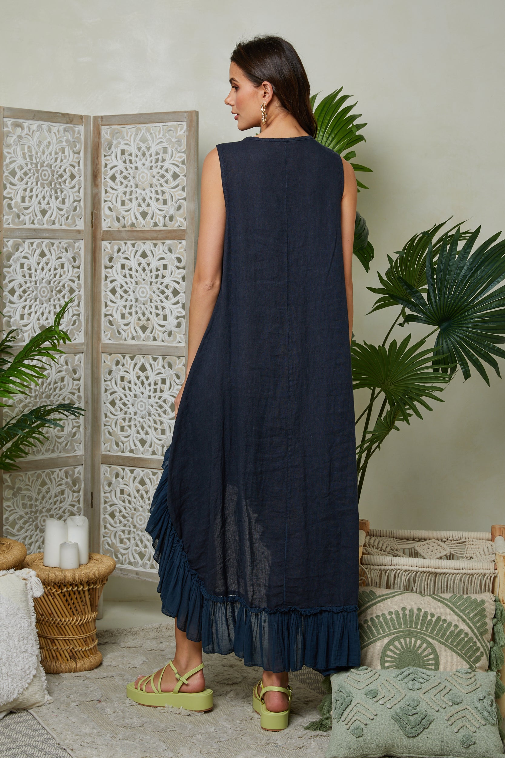 Robe longue sans manches avec un detail volant en bas